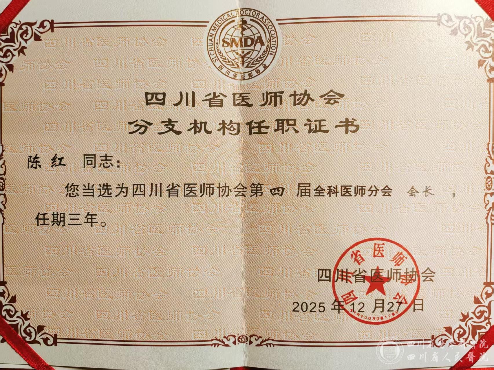全科医学中心陈红当选四川省医师协会第四届全科医师分会会长