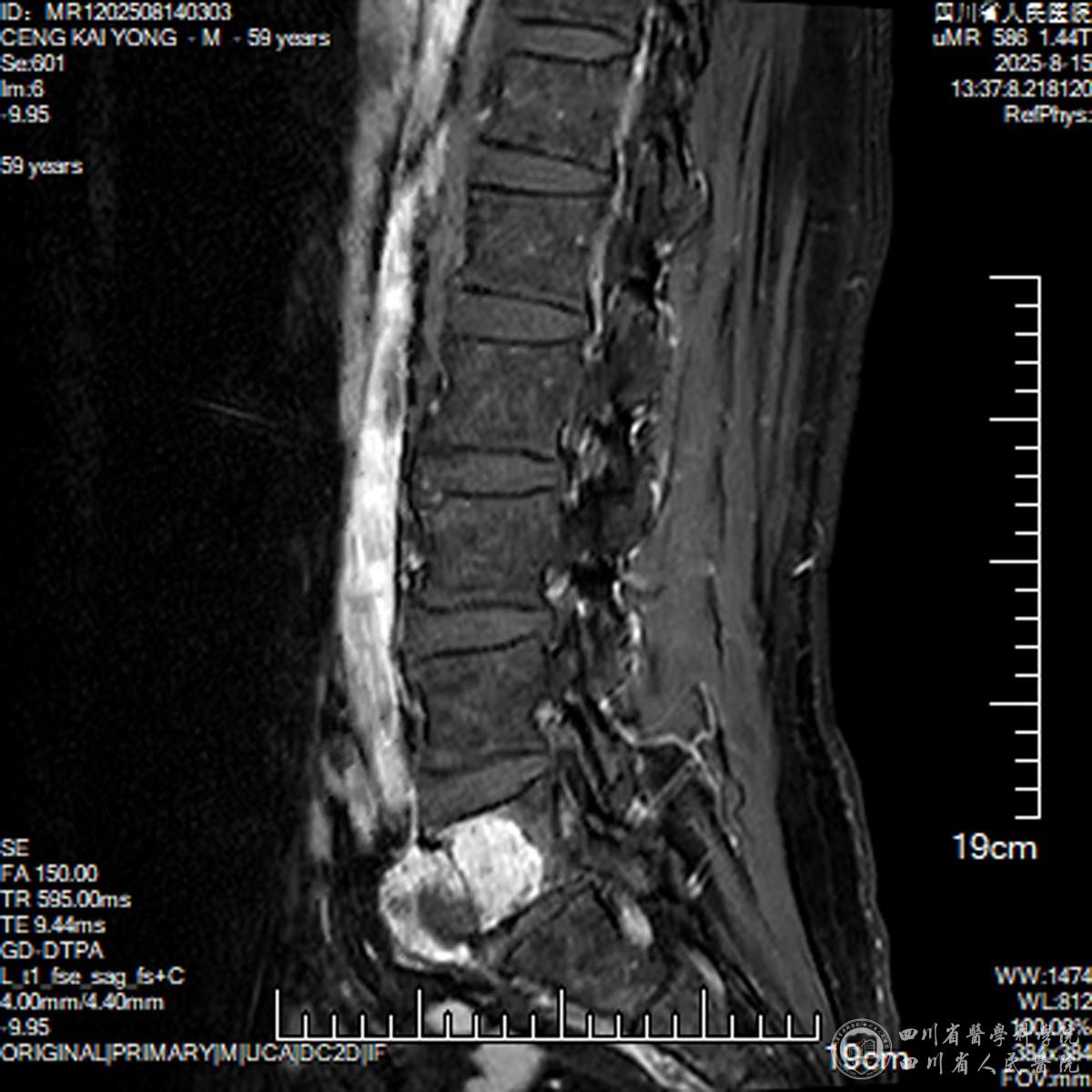 患者8个多月前无诱因出现腰部疼痛,夜间痛明显,让他夜不能寐。辗转多家医院后被确诊为“脊柱肿瘤”,但因肿瘤与椎管内神经、大血管紧密交织,手术风险极高,多家医院束手无策。“不能看着父亲遭罪”,患者子女未放弃,经人推荐找到了我院骨科俞阳主任医师。患者CT、MRI等详尽影像学检查结果显示病情严峻:不仅肿瘤已“吃掉”了部分椎体骨质,更为关键的是肿瘤已突破腰5椎体前方,与前方腹腔大血管紧密粘连;向后压迫椎管内的神经。