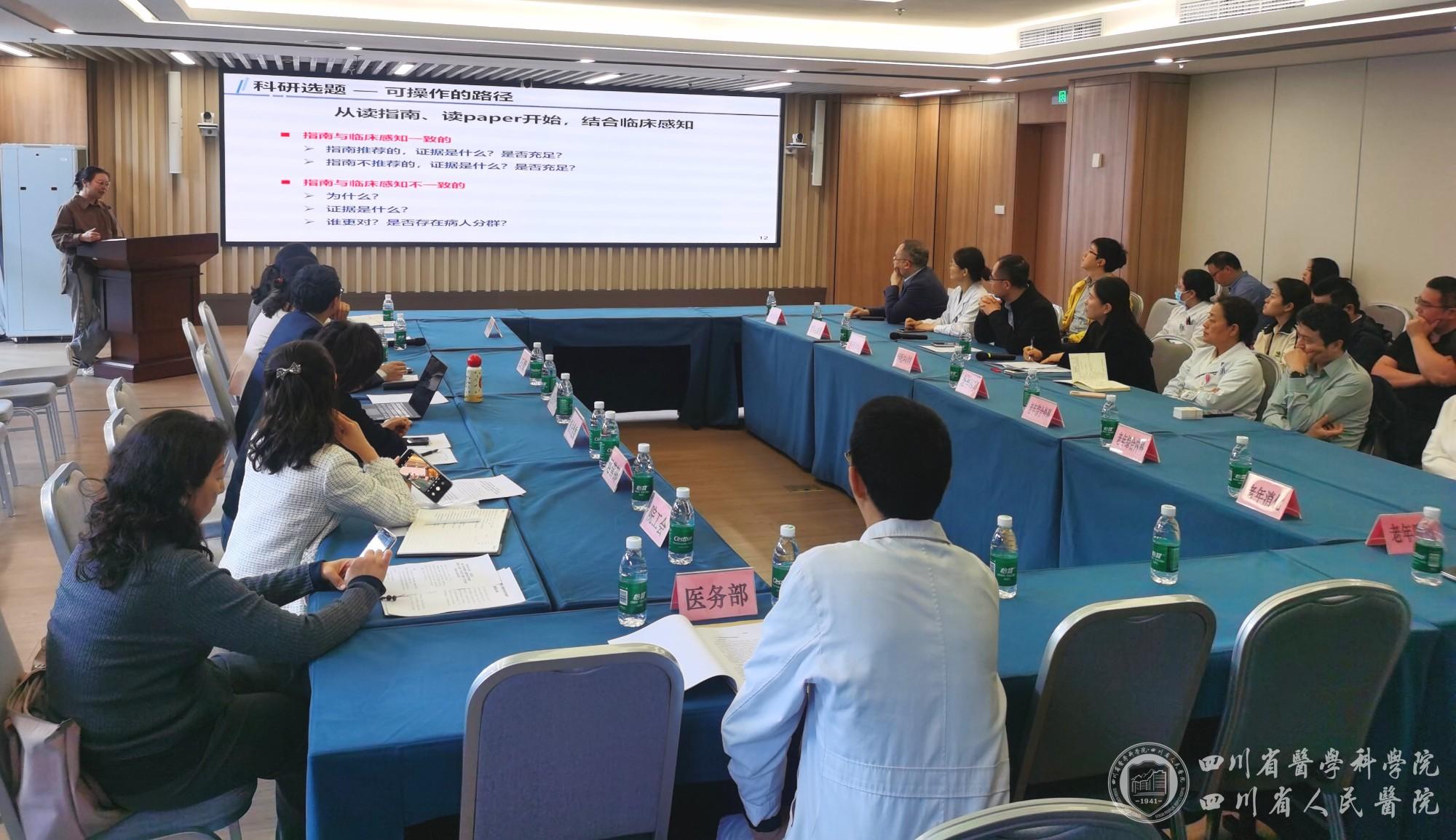 科研部副部长李雪专题分享了医院“学科群+高原+特色”三级建设体系的背景意义与战略价值,详细解读了学科群的管理机制、考核评价体系及学科群建设专项经费的使用规范与监管要求,明确了劳务费比例、设备采购流程、经费结转等关键管理细则。老年医学研究所所长莫茜结合临床科研实践,做“如何提升临床科研能力与水平”授课。她从科研选题的核心逻辑切入,运用生动案例传授了从临床痛点中提炼科学问题、开展项目设计、挖掘临床数据、推动成果转化的实战技巧,引导青年科研人员立足老年医学临床重大问题,找准路径,突破瓶颈,医研融合开展科研创新。参会人员还围绕样本库建设、学科建设经费使用、学科运营保障等核心问题展开深入探讨,交流经验,畅所欲言,提出了许多宝贵的意见和建议。
