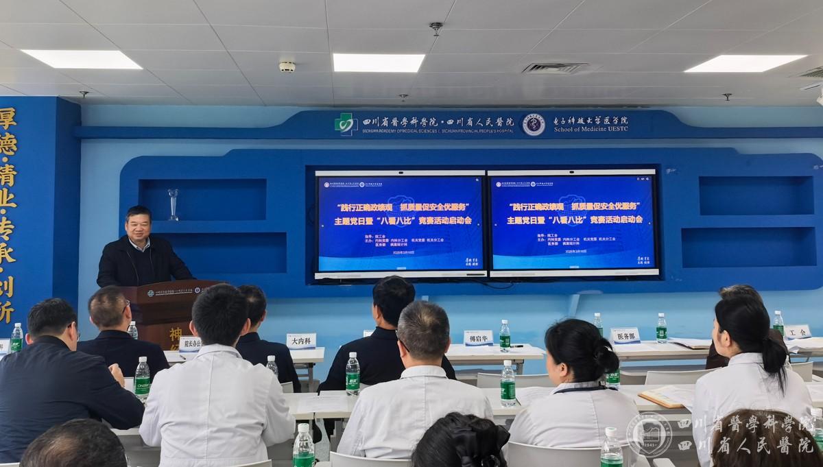 近日,“树立和践行正确政绩观 抓质量促安全优服务”主题党日暨“八看八比”竞赛活动启动会在三住17楼神经内科示教室召开。此次活动由院工会、党委办公室指导,内科党委、分工会,机关党委、分工会,医务部,病案统计科联合举行。医院相关部门负责人、内科片区各学科主任、支部书记、医疗组长代表、护士长代表参加。傅启华院长、曾俊副院长出席并讲话。